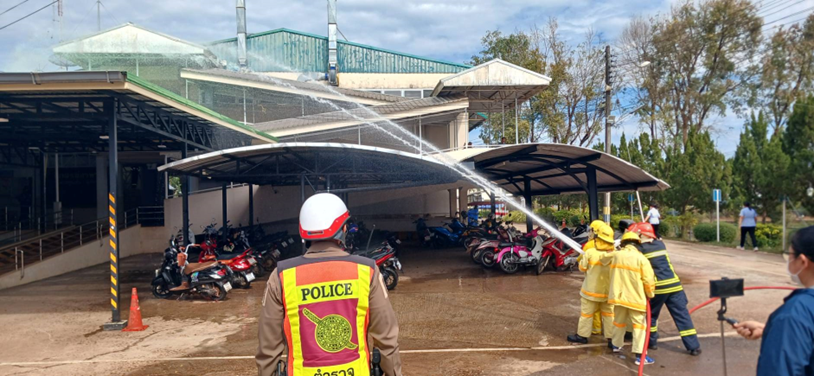 เมื่อวันที่ 26 กุมภาพันธ์ 2568 เวลา 15.00 โดยการอำนวยการของ พ.ต.อ.กิตติพงษ์ จิตรคามผกก.สภ.บ้านม่วง นำโดย พ.ต.ท.หฤษฎ์ ทองธิราช รอง ผกก.ป.สภ.บ้านม่วง พ.ต.ต.ปกรณ์พศ วันที สวป.(ชส.) สภ.บ้านม่วง พร้อมชุดจราจร สภ.บ้านม่วง ร่วมกับ รพ.พระอาจารย์มั่นภูริทัตโต ซักซ้อมแผนเผชิญเหตุการเกิดเพลิงไหม้