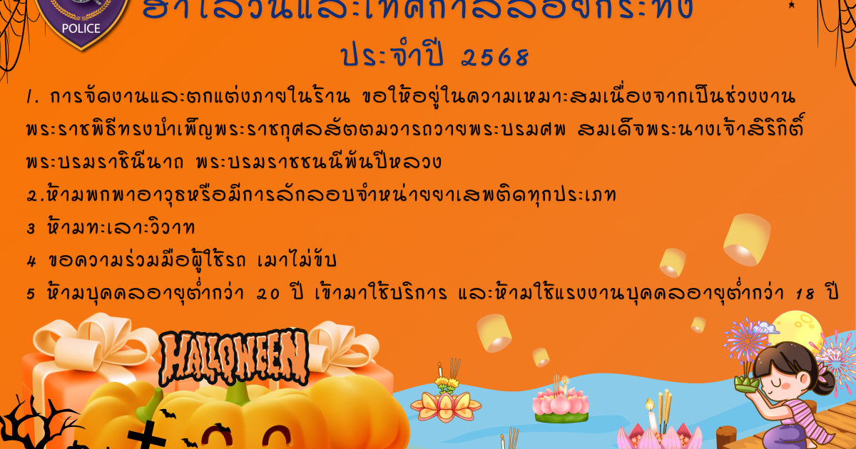 ประชาสัมพันธ์สถานบริการแนวทางการจัดงานฮาโลวีนและเทศกาลลอยกระทง ประจำปี 2568