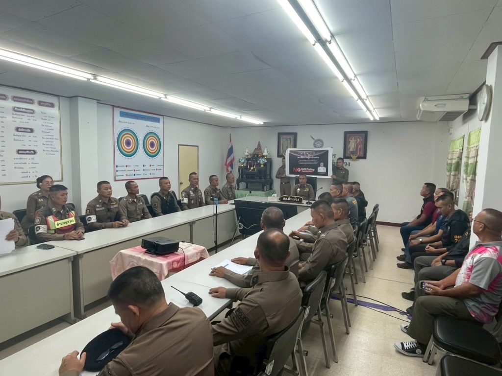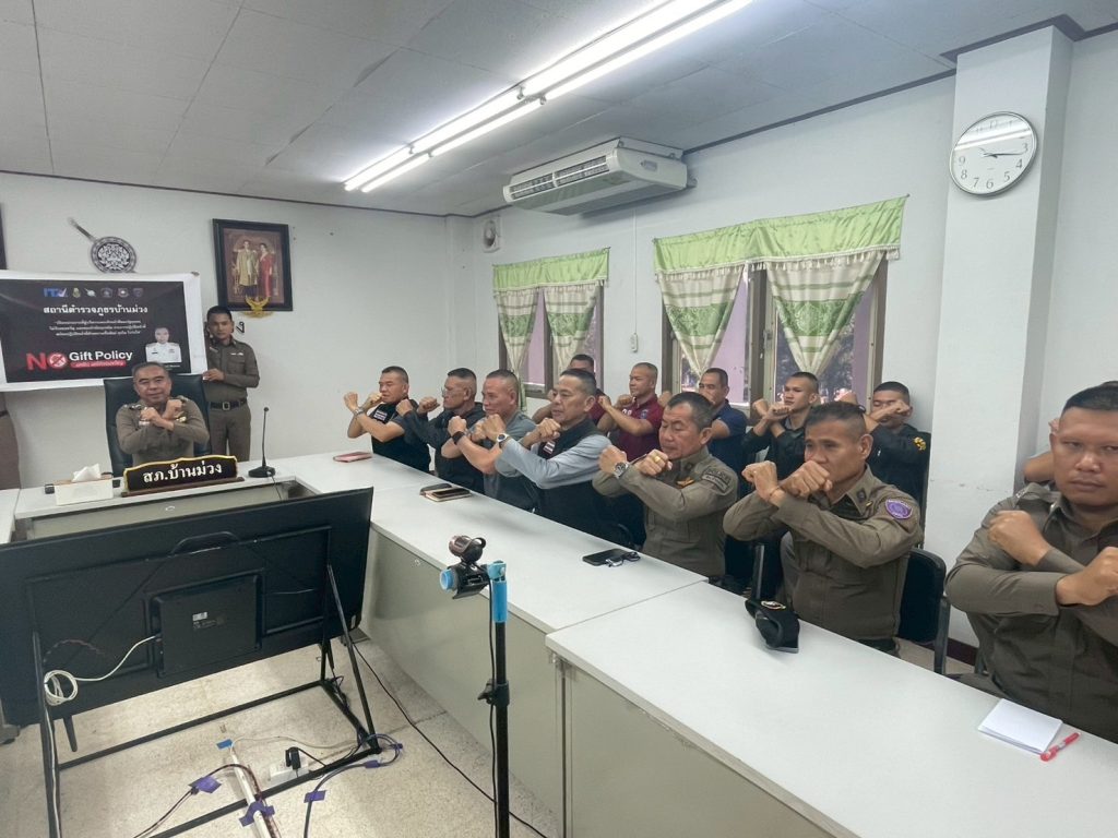 วันที่ 30 พ.ย. 2567 พ.ต.อ.กิตติพงษ์ จิตรคาม ผกก.สภ.บ้านม่วง เวลา 10.00 น. ได้จัดการประชุมข้าราชการตำรวจในสังกัด เพื่อชี้แจงและประกาศเจตจํานงในการนํานโยบายการต่อต้านการรับสินบน (Anti- Bribery Policy) ไปปฏิบัติ เพื่อให้ทุกคนทราบและปฏิบัติ โดยชี้แจงให้เข้าถึง การไม่รับของขวัญ ของกำนัลตามประกาศของสถานี เป็นสิ่งที่ต้องปฏิบัติตามประกาศโดยทุกคนทราบ และ ตั้งมั่นปฏิบัติให้เกิดเป็นรูปธรรมและเป็นที่ประจักษ์ของสาธารณะชนโดยให้จัดทำประกาศติดไว้ที่จุดบริการประชาชนเพื่อให้ทราบโดยทั่วกัน