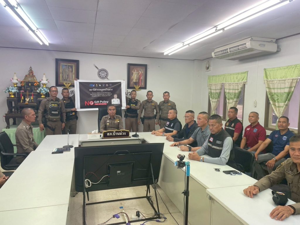 วันที่ 30 พ.ย. 2567 พ.ต.อ.กิตติพงษ์ จิตรคาม ผกก.สภ.บ้านม่วง เวลา 11.00 น. ได้เรียกข้าราชการตำรวจ สภ.บ้านม่วง ทุกนาย เข้าร่วมกิจกรรมเสริมสร้างความรู้เกี่ยวกับการจัดการทรัพย์สินของราชการ ของบริจาค และการจัดเก็บของกลาง เพื่อป้องกันการทุจริตภายในหน่วยงาน ก่อนห้วงเทศการปีใหม่ 2568 พร้อมทั้งชี้แจงเกี่ยวกับนโยบายดังกล่าวต่อข้าราชการตำรวจ สภ.บ้านม่วง ให้ปฏิบัติตามอย่างเคร่งครัด