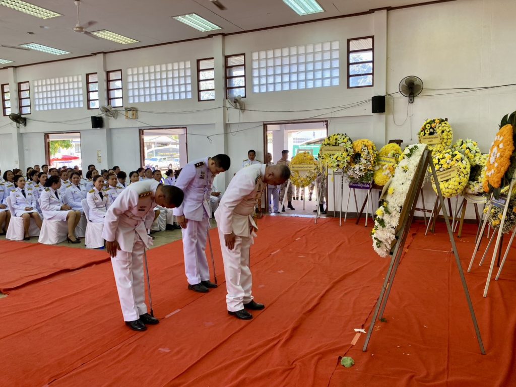 พ.ต.อ.กิตติพงษ์ จิตรคาม ผกก.สภ.บ้านม่วง พร้อมด้วยข้าราชการตำรวจ สภ.บ้านม่วง , ส่วนราชการอำเภอบ้านม่วง ร่วมพิธีวางพวงมาลา เนื่องในวันคล้ายวันสวรรคต พระบาทสมเด็จพระบรมชนกาธิเบศ มหาภูมิพลอดุลยเดชมหาราช บรมนาถบพิตร 13 ตุลาคม 2568 ณ หอประชุมอำเภอบ้านม่วง อำเภอบ้านม่วง จังหวัดสกลนคร โดยมี นายอำเภอบ้านม่วง เป็นประธานในพิธี