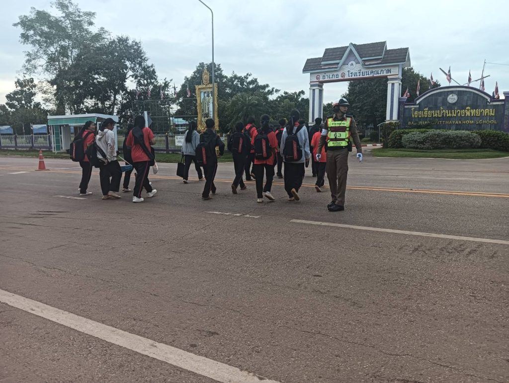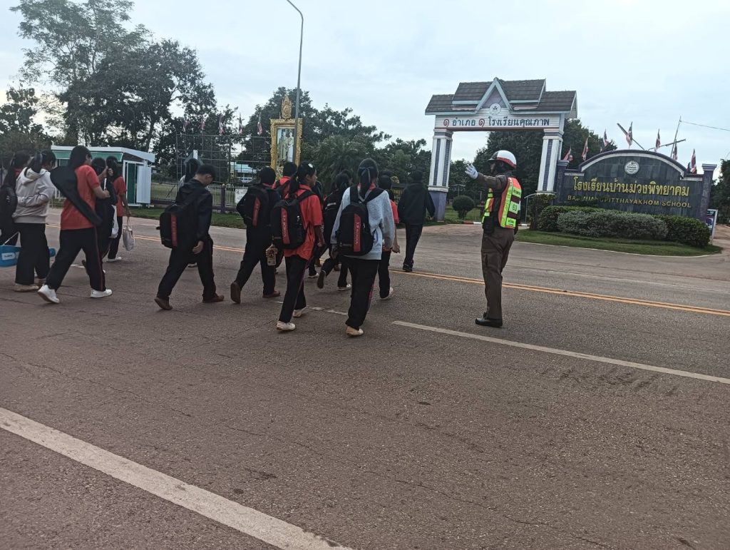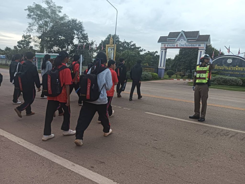 มอบหมายสั่งการให้ ร.ต.อ สุภิศักดิ์ ภูทำมา รอง.สวป.สภ.บ้านม่วง ( ร้อยเวร 60 ) ร.ต.ต.สัมพันธ์ หัตถประนิต รอง สว.(ป) สภ.บ้านม่วง ปฏิบัติหน้าที่จราจรเวร พร้อมด้วยเจ้าหน้าที่เทศกิจ อำนวยความสะดวกด้านการจราจร หน้าสถานศึกษาโรงเรียนบ้านม่วงพิทยาคม