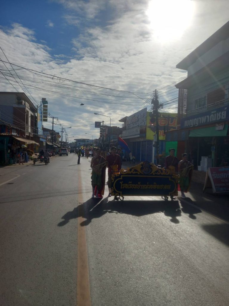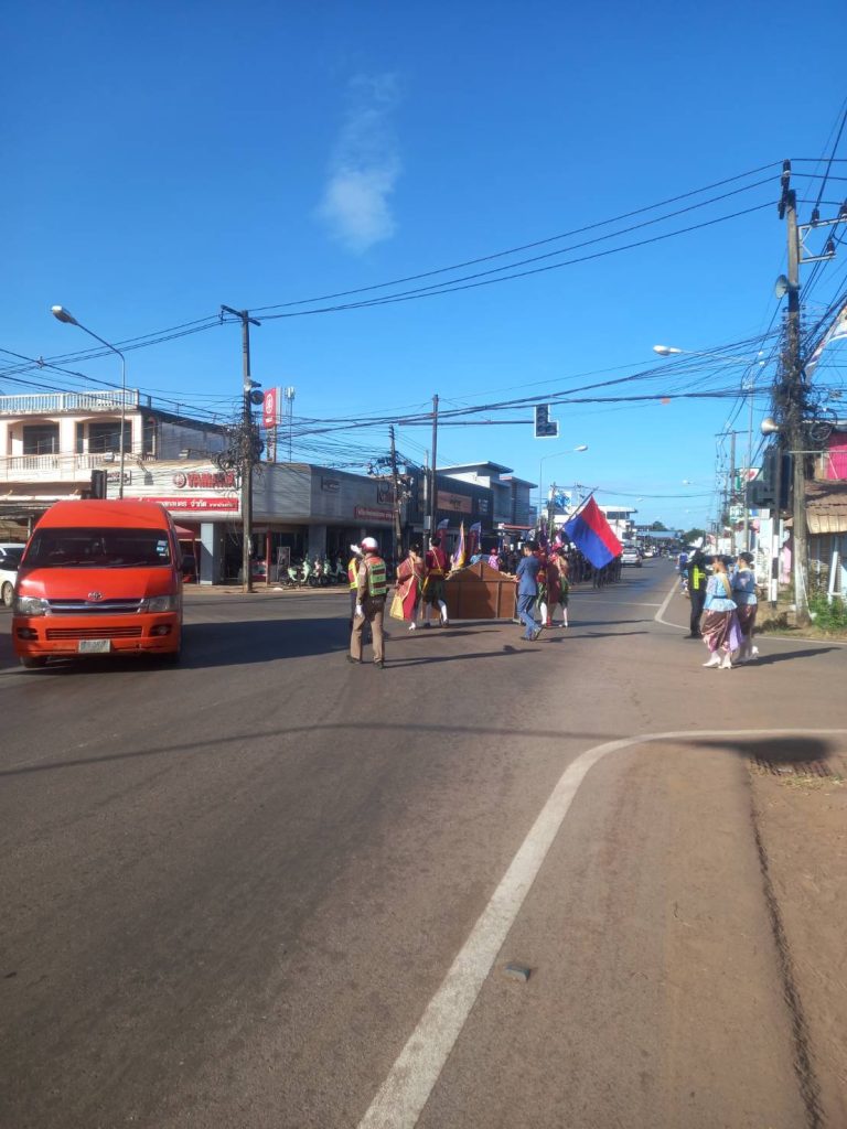 งานจราจรสถานีตำรวจภูธรบ้านม่วงอำนวยความสะดวกด้านการจราจรขบวนแห่งกีฬาสีประจำปี2568 โรงเรียนบ้านม่วงพิทยาคม
