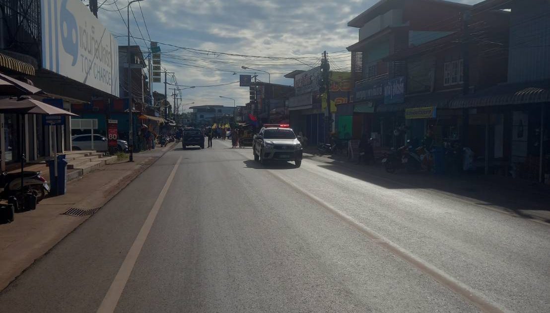 งานจราจรสถานีตำรวจภูธรบ้านม่วงอำนวยความสะดวกด้านการจราจรขบวนแห่งกีฬาสีประจำปี2568 โรงเรียนบ้านม่วงพิทยาคม
