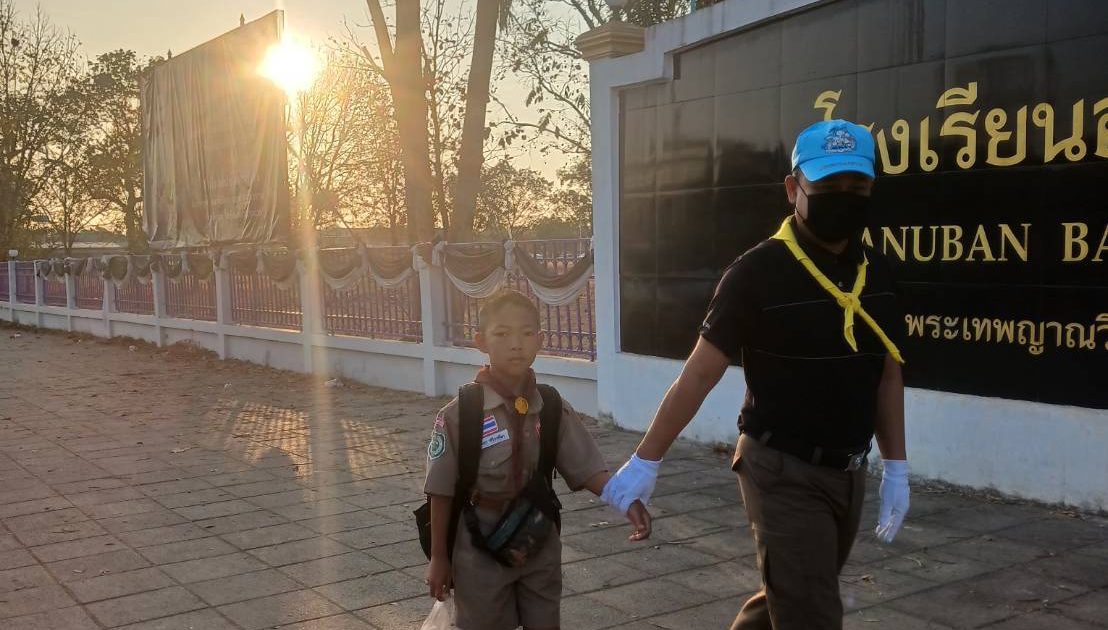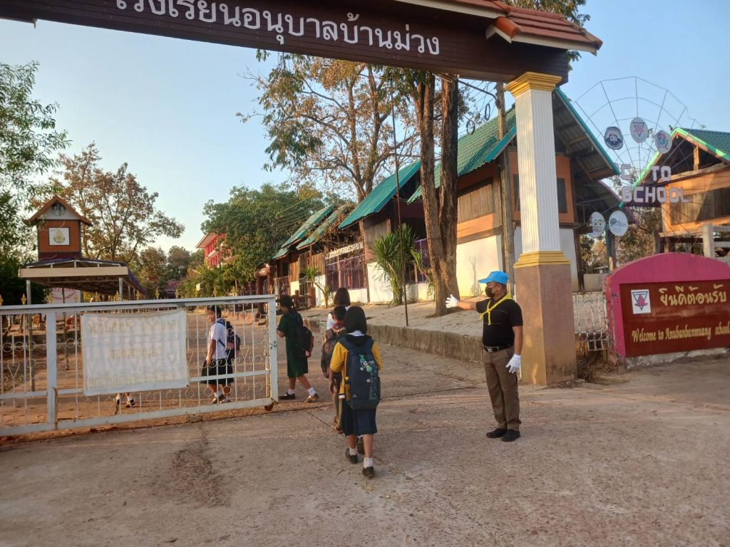 อำนวยความสะดวกการจราจรหน้าโรงเรียนอนุบาลบ้านม่วง