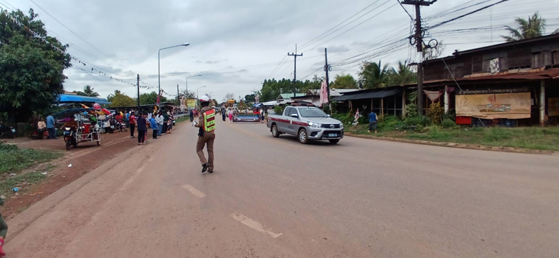 เมื่อวันที่ 8 มีนาคม 2568 เวลา 15.00 โดยการอำนวยการของ พ.ต.อ.กิตติพงษ์ จิตรคามผกก.สภ.บ้านม่วง พ.ต.ท.หฤษฎ์ ทองธิราช รองผกก.ป.สภ.บ้านม่วง มอบหมายให้ พ.ต.ต.ปกรณ์พศ วันที สวป.(ชส.) สภ.บ้านม่วง ร.ต.อ.สุภิศักดิ์ ภูทำมา รอง สวปฯ ร้อยเวร 60 ,พร้อมด้วย ชุดจราจร อำนวยความสะดวกการจราจรขบวนแห่ งานบุญประทายข้าวเปลือก บุญมหาชาติพระเวสสันดรชาดก ประจำปี บ.หว้าน ต.บ่อแก้ว อ.บ้านม่วง จ.สกลนคร