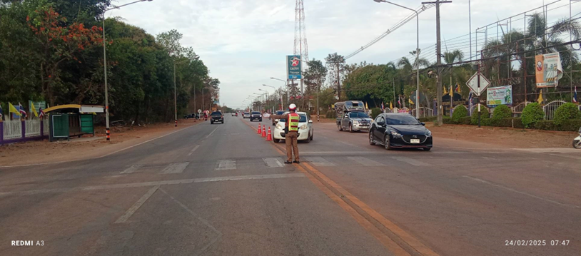 อำนวยความสะดวกการจราจร ขบวนแห่กีฬาสีประจำปี 2568 โรงเรียนบ้านม่วงพิทยาคม