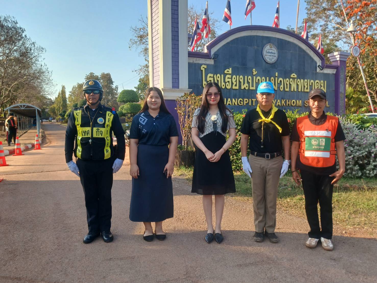 อำนวยความสะดวกการจราจรหน้าโรงเรียนบ้านม่วงพิทยาคม