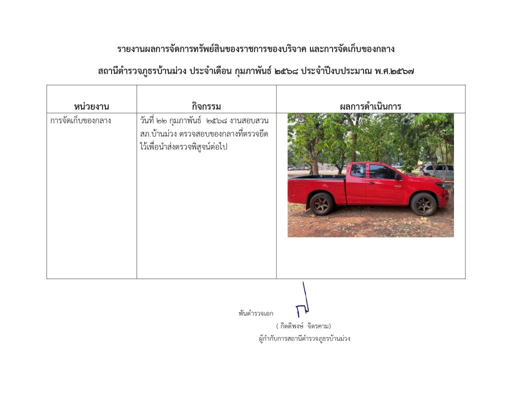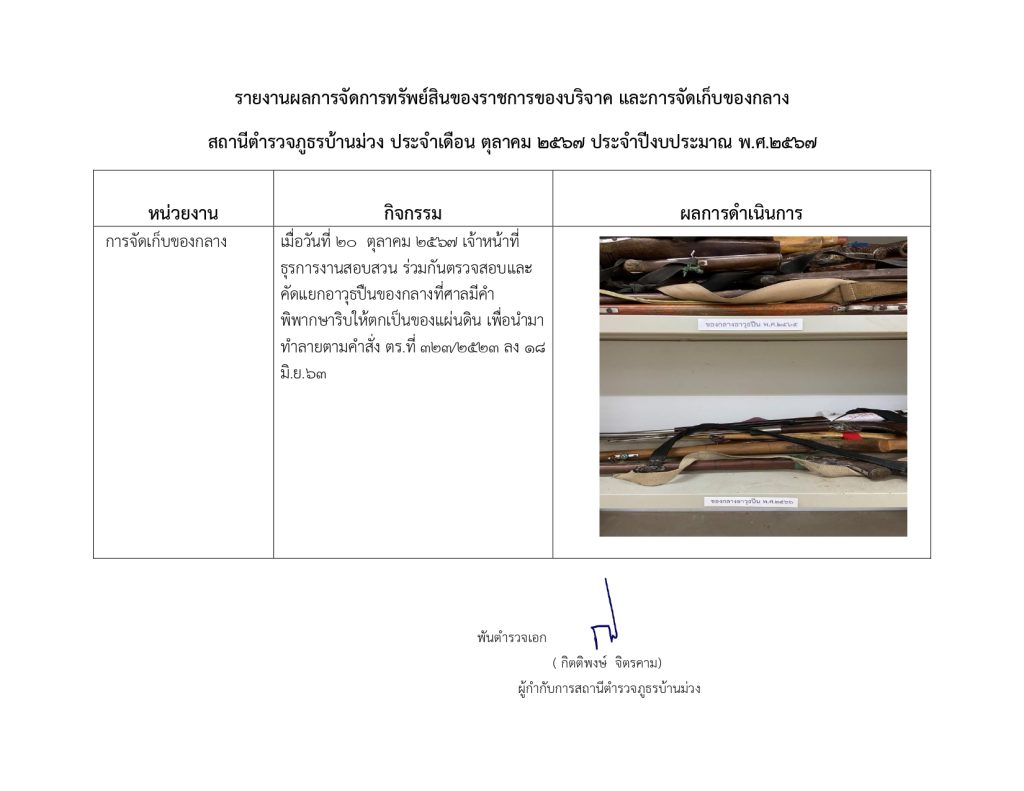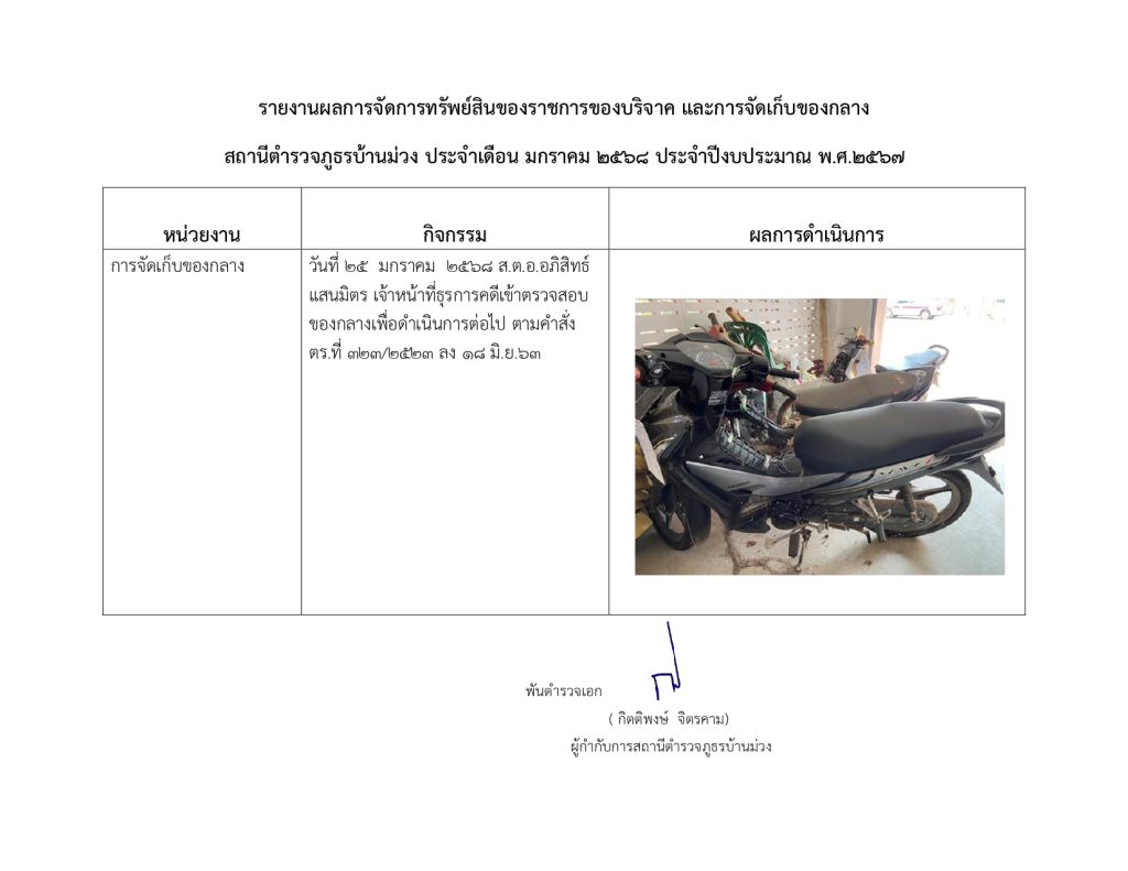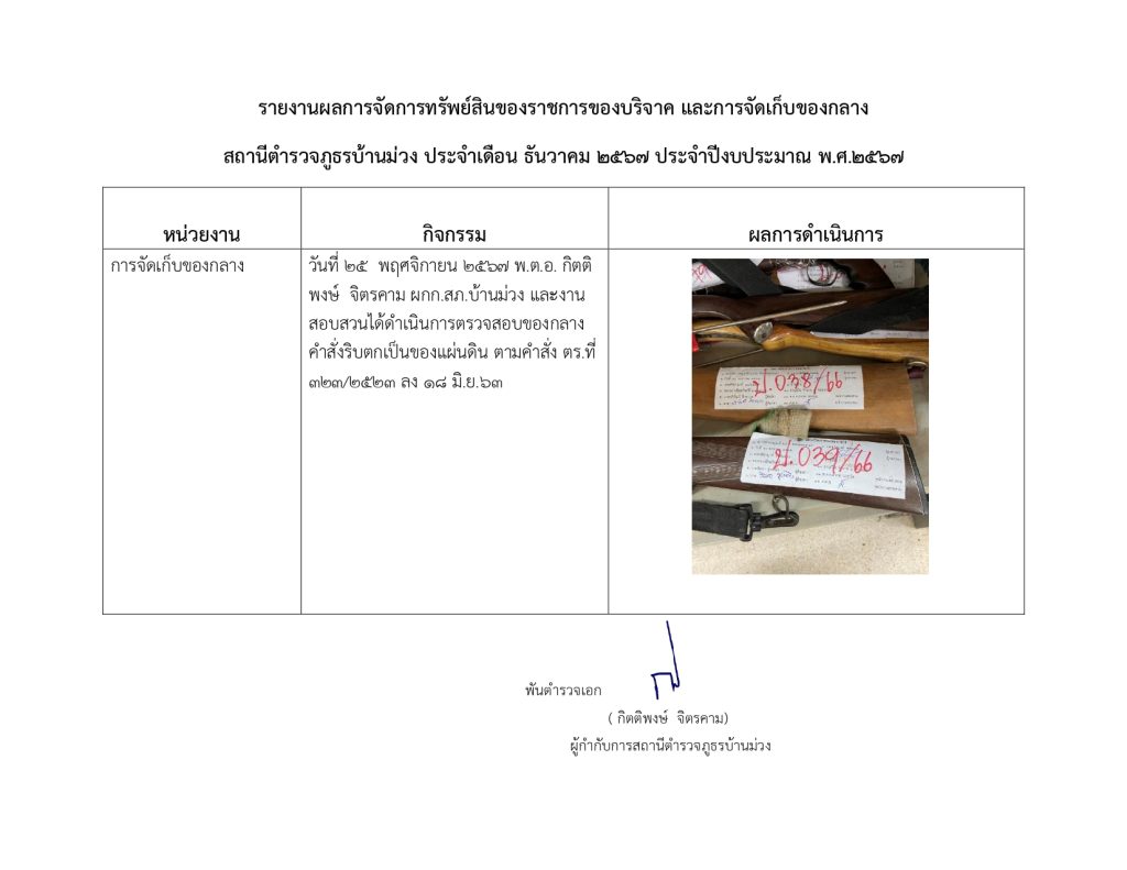 O23 การจัดการทรัพย์สินของราชการ ของบริจาค การจัดเก็บของกลางและการรายงานผล